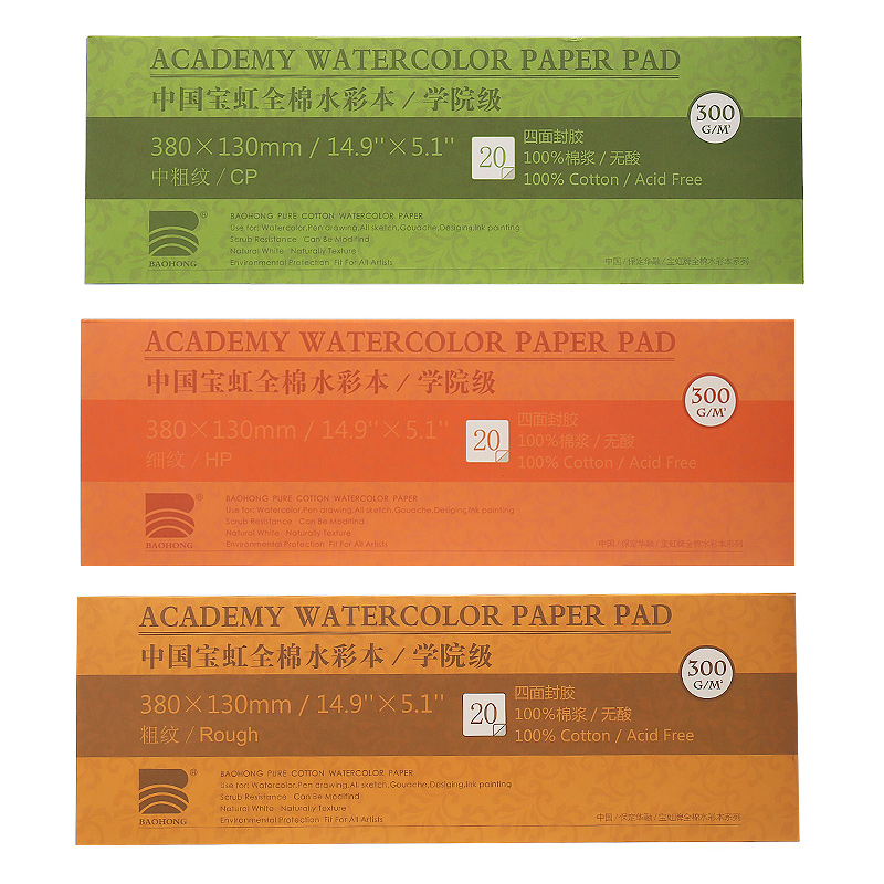Small scene watercolor fan special special Baohong trial package 190*130mm20 sheets 200g 32 open and medium coarse grain 180mmX125mm200g 16 open and medium