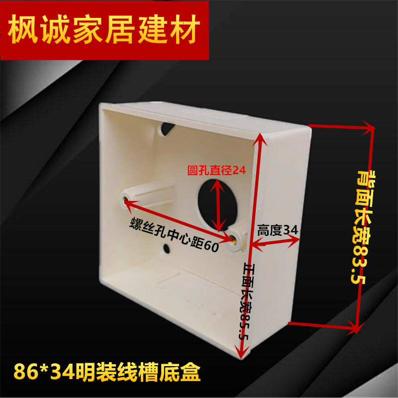 Liansu 86 type switch socket panel surface mounted bottom box PVC junction box wiring box 86*86*34 Slot single box