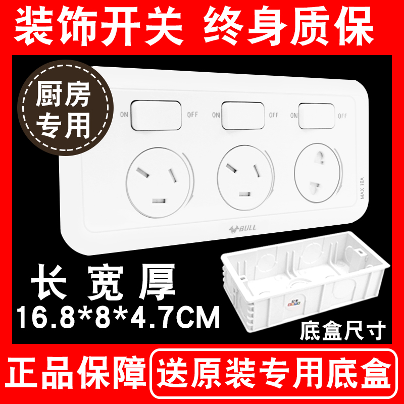 Bull kitchen special socket 10A fume smoke wall dark socket switch control power supply waterproof G10E603