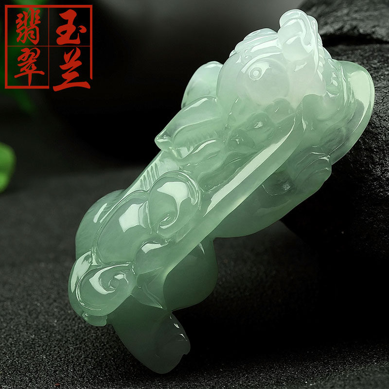 Magnolia natural Burmese jadeite Ruyi Overlord Pixiu pendant A goods old pit pendant ice waxy large male