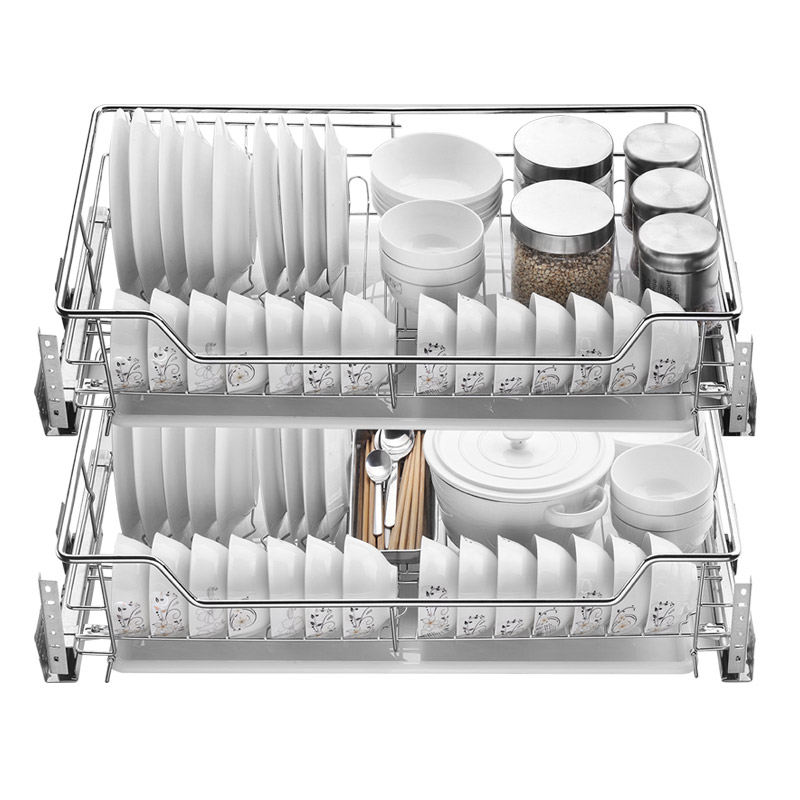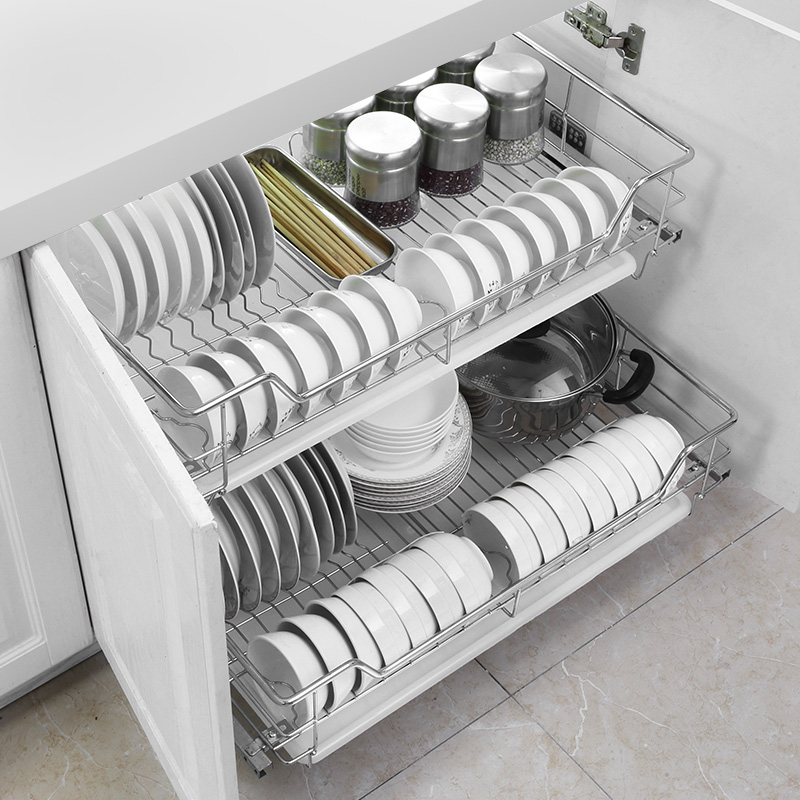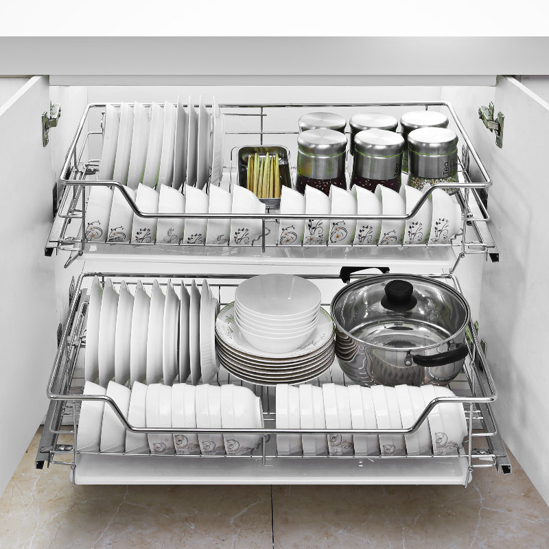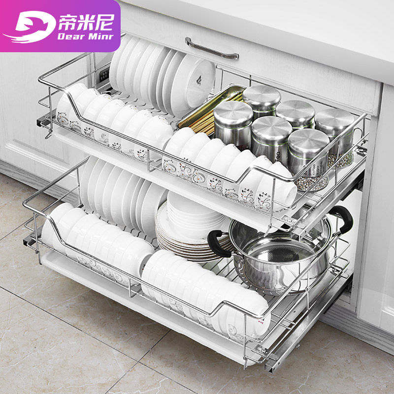 Dimini basket kitchen cabinet 304 stainless steel double drawer type built-in bowl rack kitchen cabinet seasoning basket bowl basket