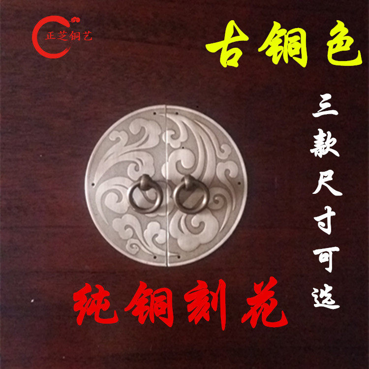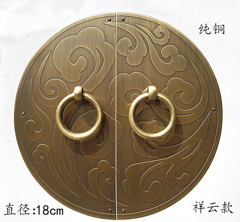 Antique Chinese pure copper auspicious cloud handle wardrobe shoe cabinet door copper carving flower cloud pattern handle