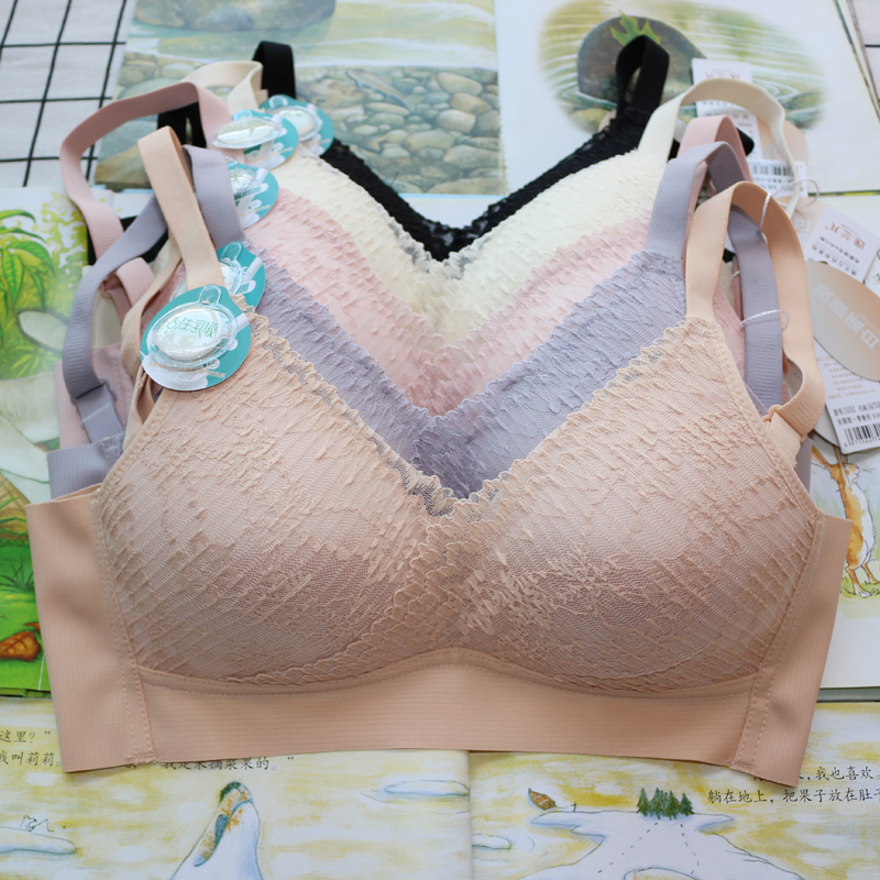 Natural latex small chest push-up bra thin sexy lace small cup bra soft breathable side closure underwear for girls