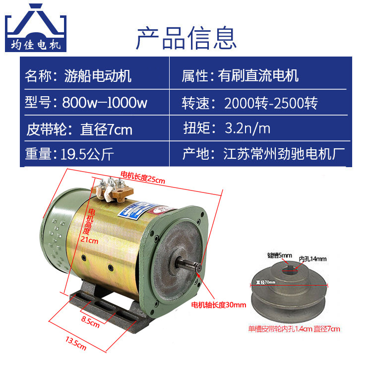 Junjia brand Brush Motor Park cruise ship battery boat glass steel boat 24v500w48v DC series motor