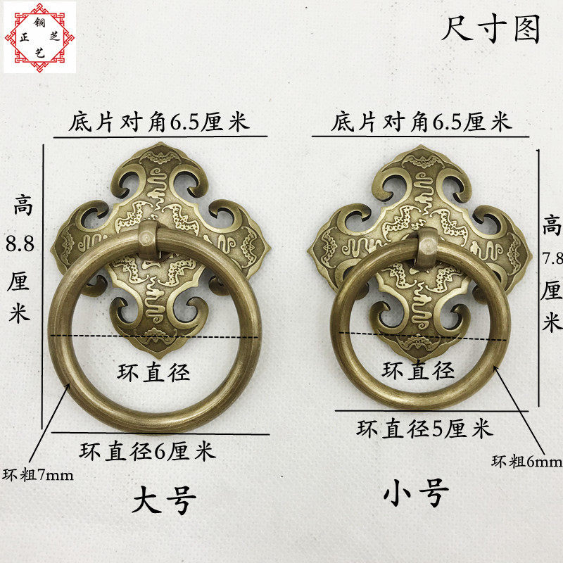 Chinese Ming and Qing antique copper accessories furniture cabinet door solid wood door decoration door decoration door cymbal pull ring pure copper handle