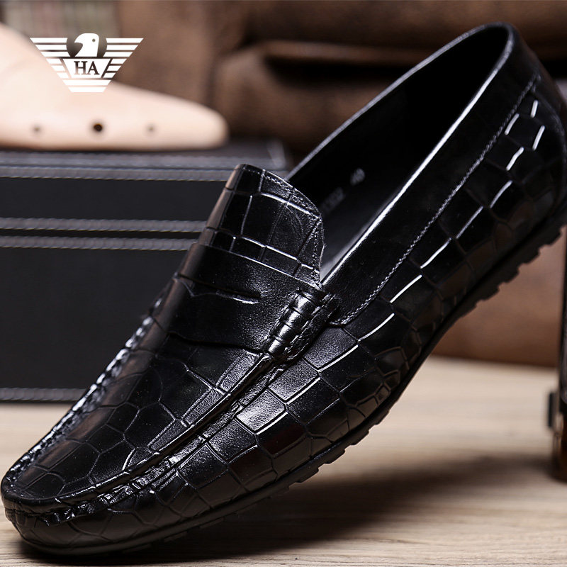 Italian European station beanie shoes men's autumn breathable leather business casual crocodile pattern lazy low-top driving trendy shoes