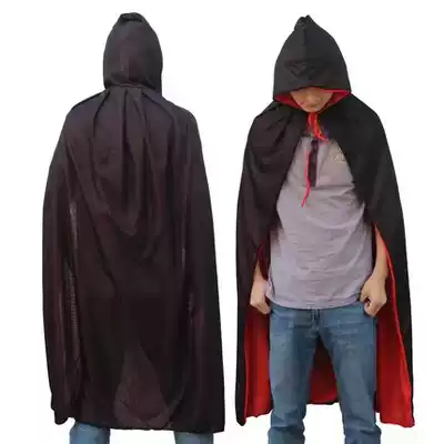 Halloween show ghost costume cloak with hat double red black two-sided cloak
