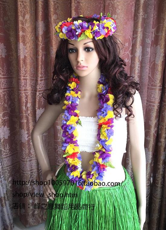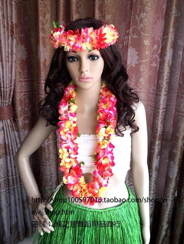 Hawaiian hula garland set Bracelet foot ring Performance clothing Beach seaside garland set lei set