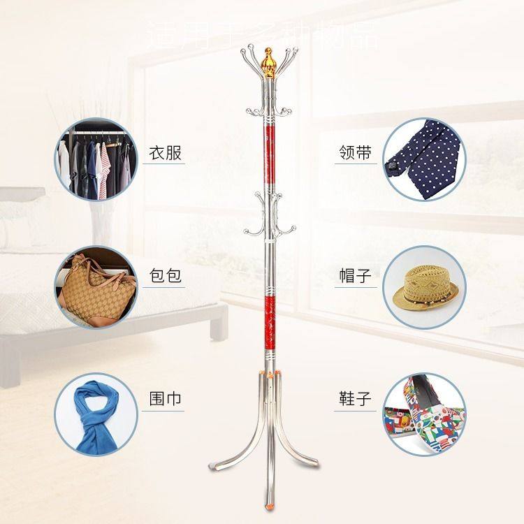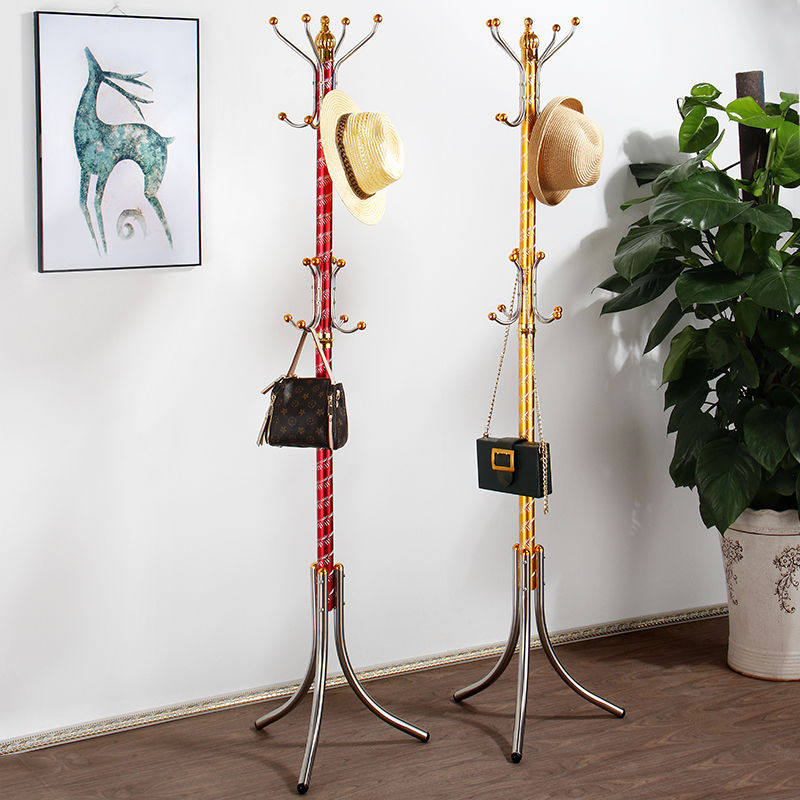 European style floor-to-ceiling stainless steel solid wood coat rack hanging hanger creative mobile clothes rack clothes rack clothes hat hanging tripod