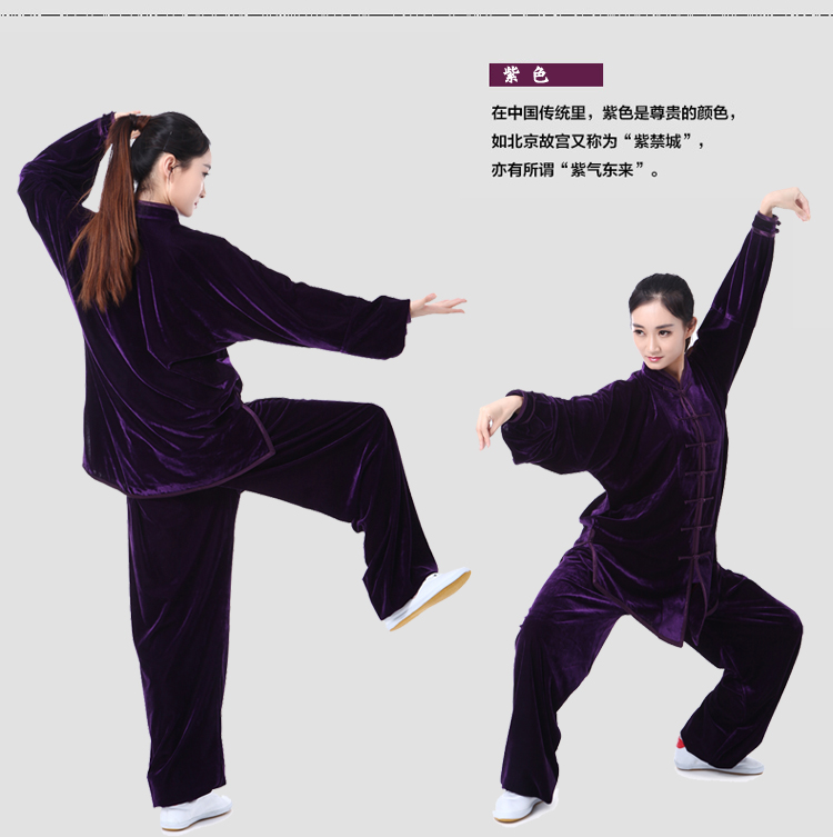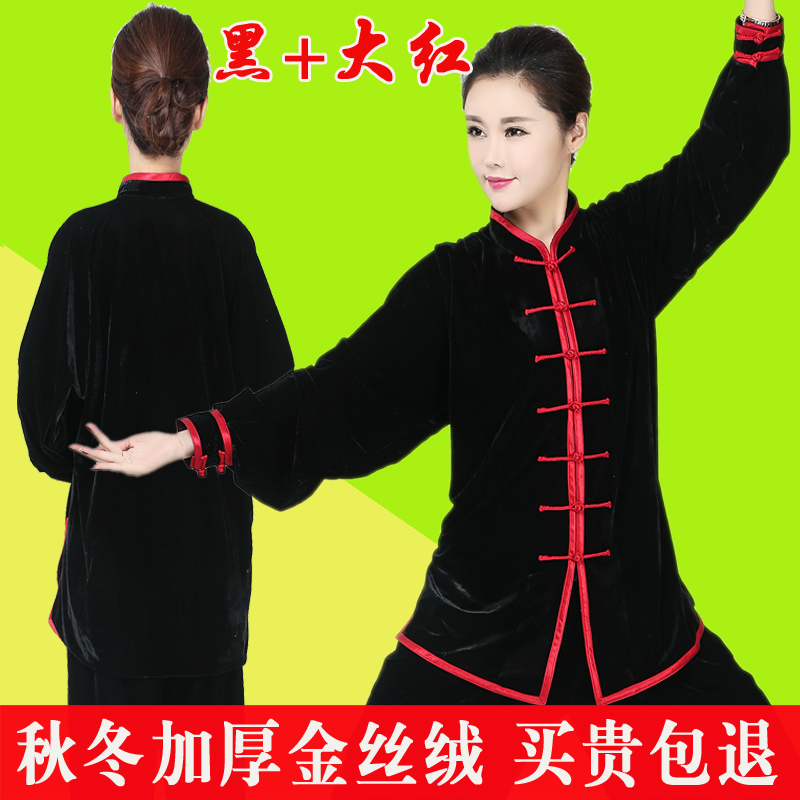 Tai Chi suit for autumn and winter for men and women, long-sleeved thick gold velvet, middle-aged and elderly Tai Chi morning training suit, non-falling velvet martial arts clothing