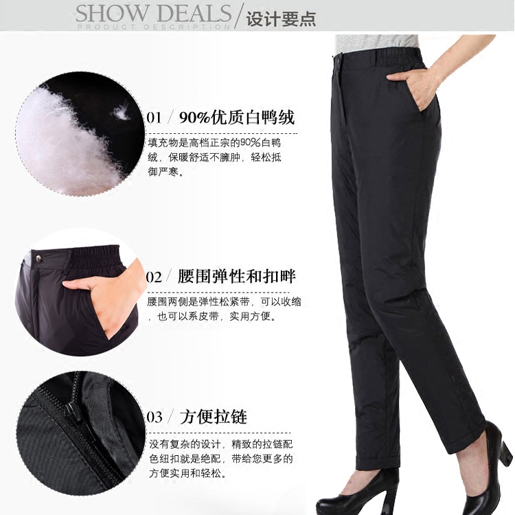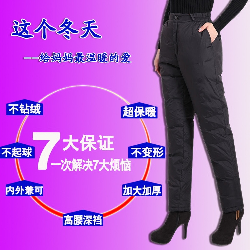 Middle Aged Down Pants Woman External Wearing Thickened Duck Suede Pants Winter Warm Big Size Yard Mom High Waist Straight Cylinder Down Cotton Pants