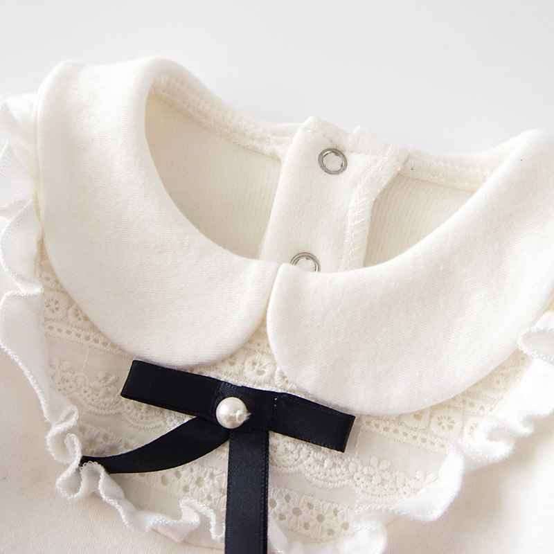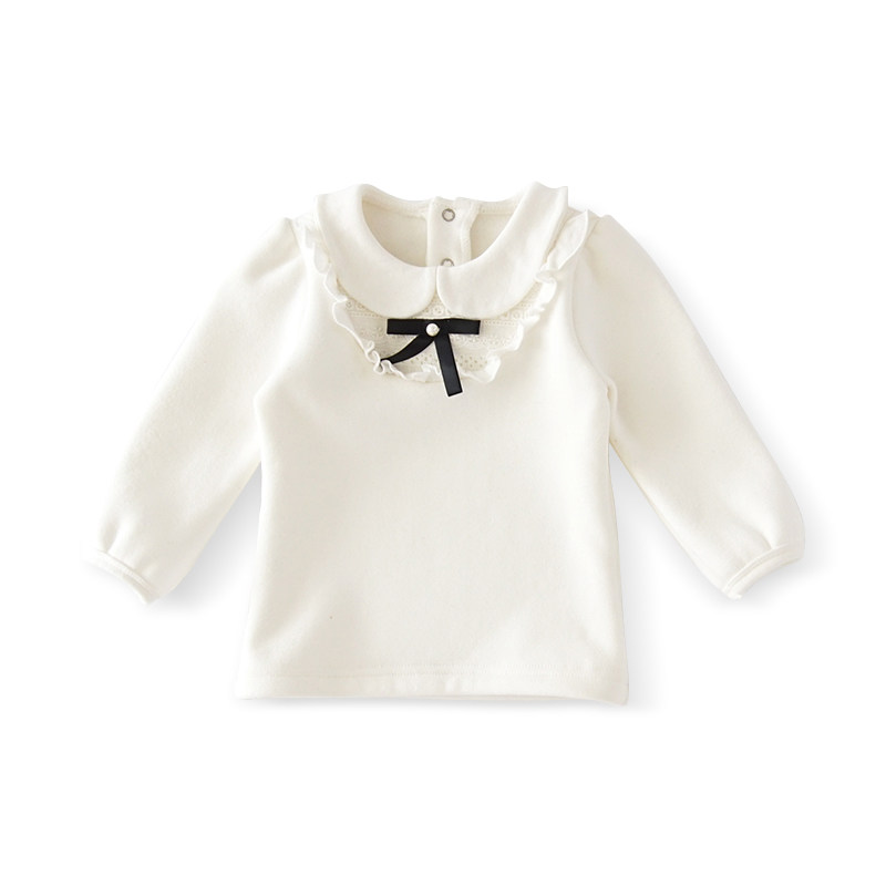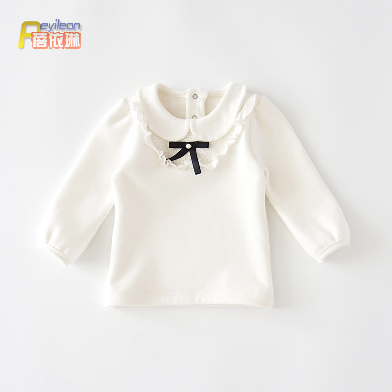 Little girl baby plus fleece bottoming shirt winter 0-1 year old top clothes baby autumn and winter doll collar long-sleeved T-shirt