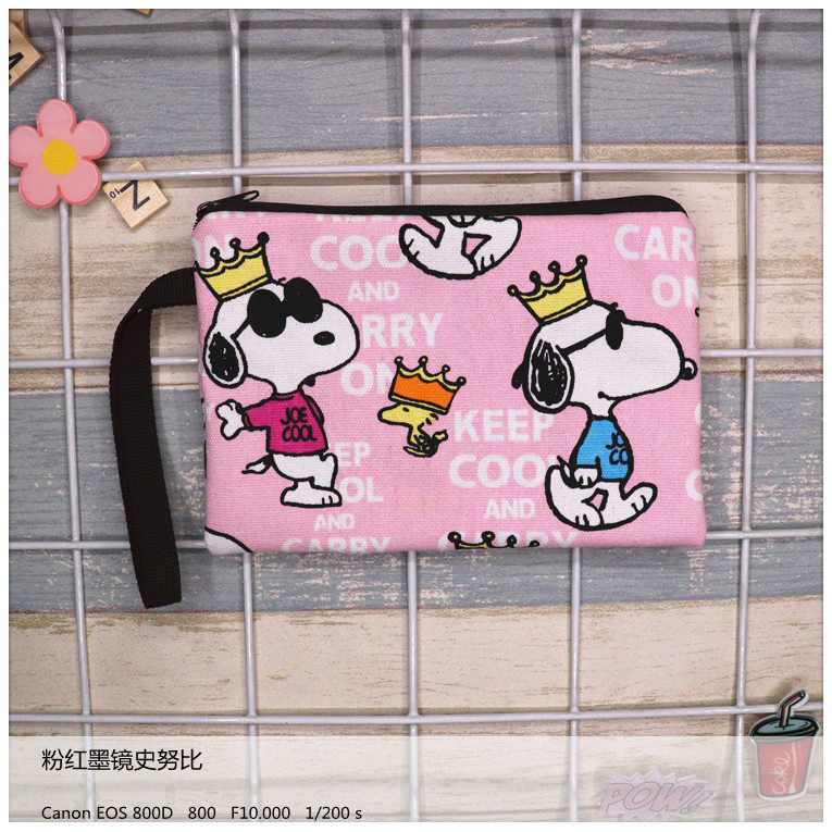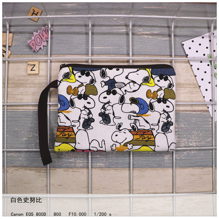 Homemade fabric canvas thickened cartoon Snoopy personality hand holding mobile phone wrist bag change key cosmetic bag bag