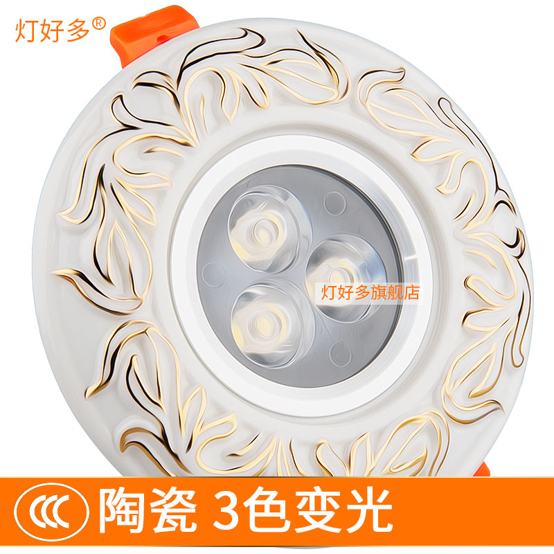 Three color light-changing European Ceramic LED LED lighting lighting Ceiling Lighting Lighting 7 5 cm open hole living room ceiling lamp 7W