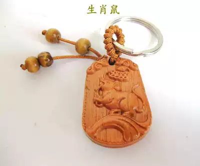 Peach wood mascot Twelve 12 zodiac genus Rat cow Tiger rabbit dragon snake horse Sheep monkey Chicken dog pig keychain hanging jewelry