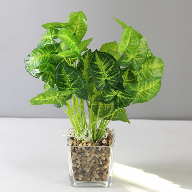 Simulation of fake flowers, silk flowers, four-leaf grass, green plants, potted flowers, decorations, tea table, table table, vase, small basin