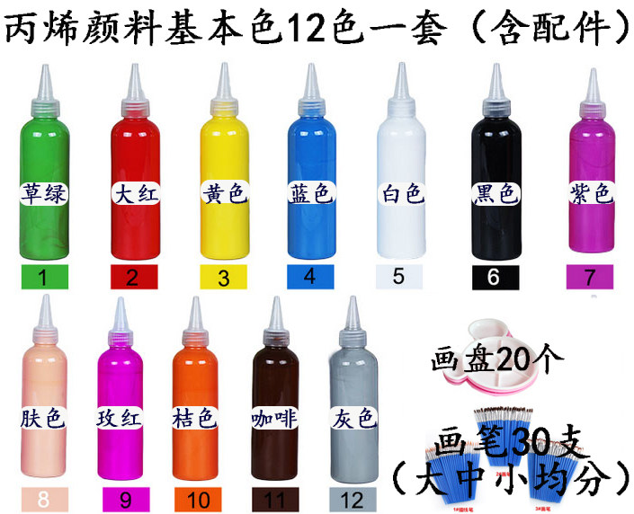 White Gray Black Red rose red pink orange Lake blue Dark blue sky blue Dark purple brown lemon yellow Light purple Skin tone Medium yellow Golden yellow Pink grass green Fruit green Rose purple pine brown