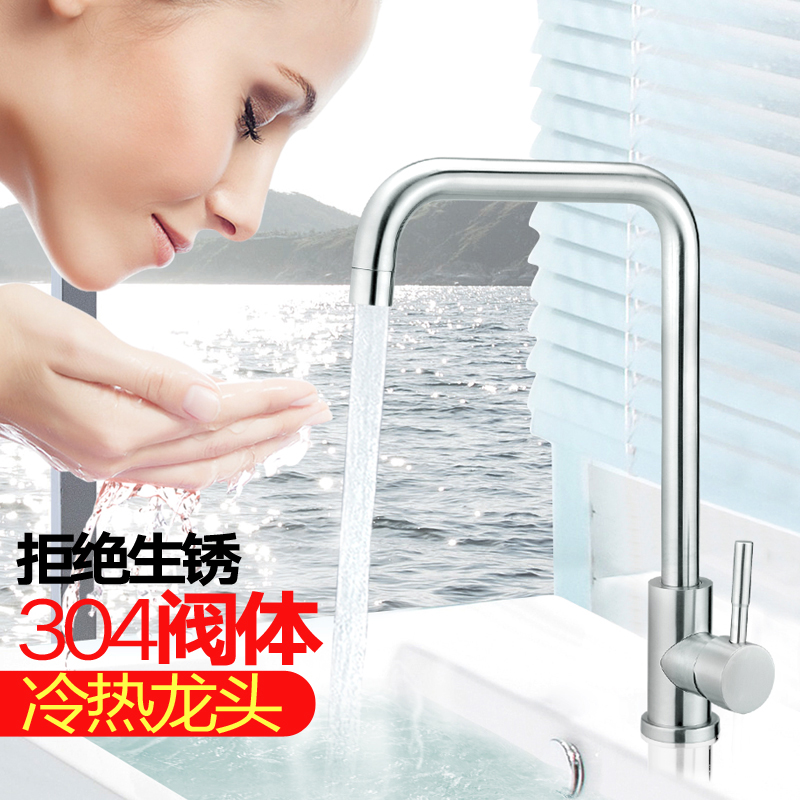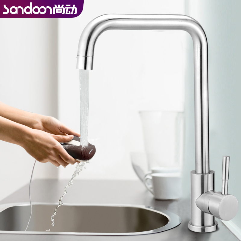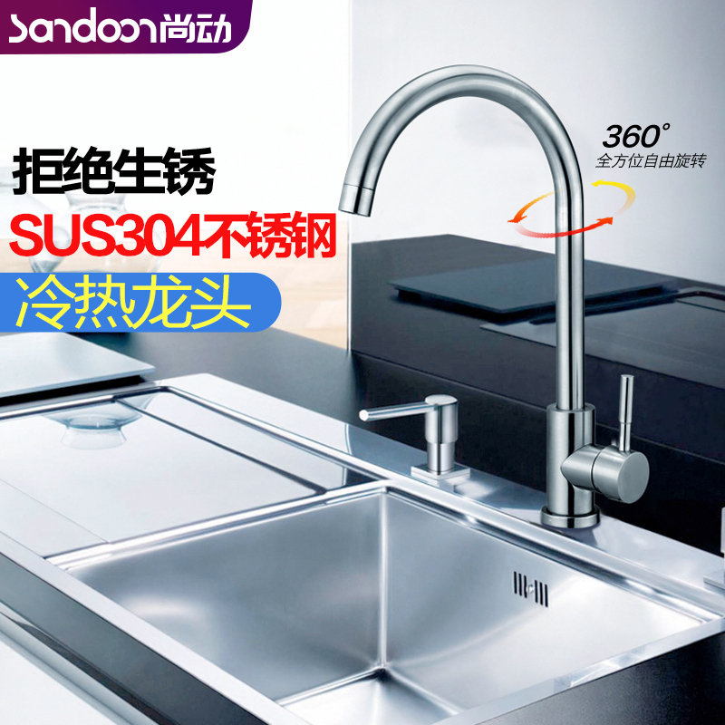 Household Shangdong 304 stainless steel kitchen sink hot and cold water faucet All copper sink faucet brushed rotatable