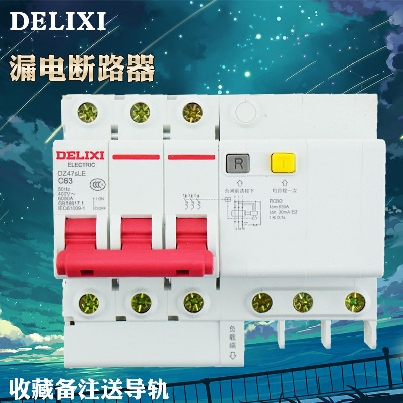 Delixi leakage protection DZ47sLE 3P N 4P air switch three 380V leakage air breaker