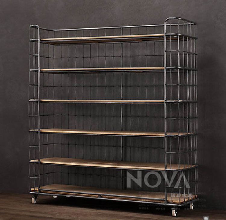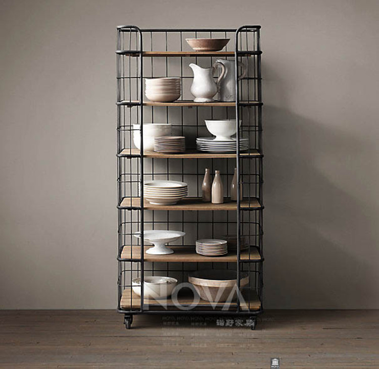 American Country Wrought Iron Solid Wood Shelf Retro Do Old Floor Bookshelf Kitchen Storage Rack Display Rack Storage Rack