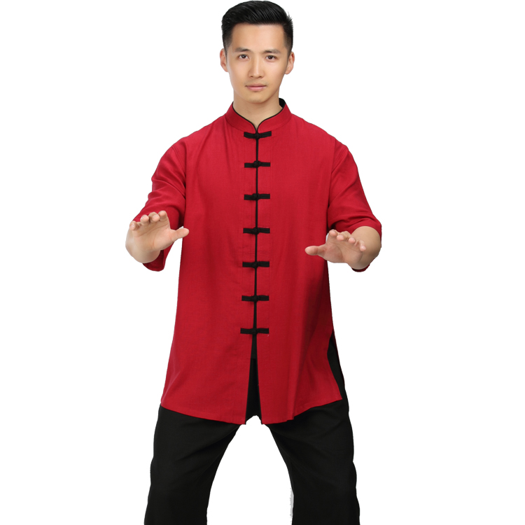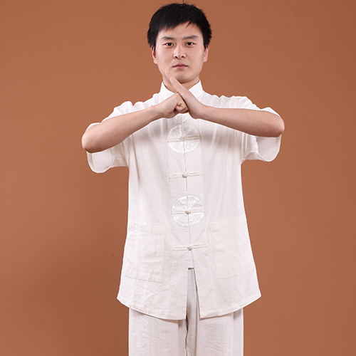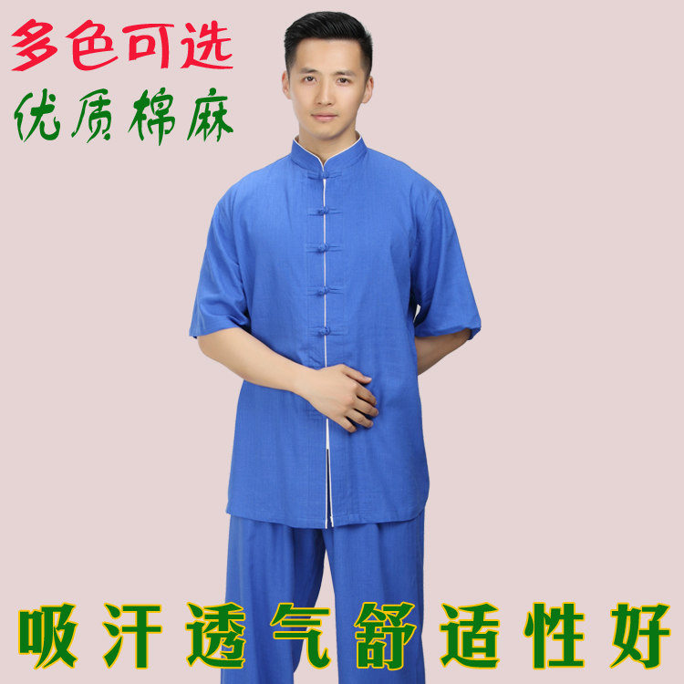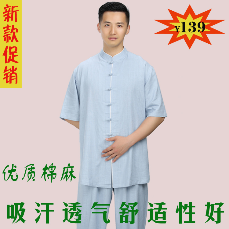 Hon's Dream Tai Chi Fu Men's cotton Asayaki Summer short sleeves mid-age Taijiquan Martial Arts Performance Martial Arts Performance Martial Arts