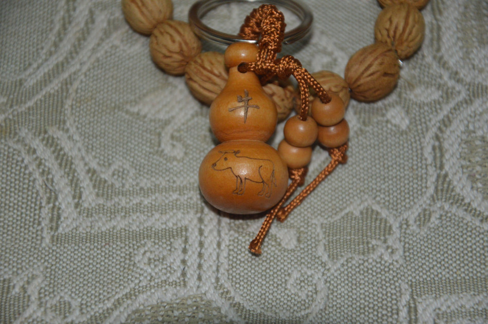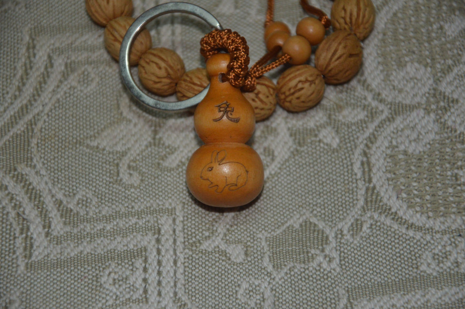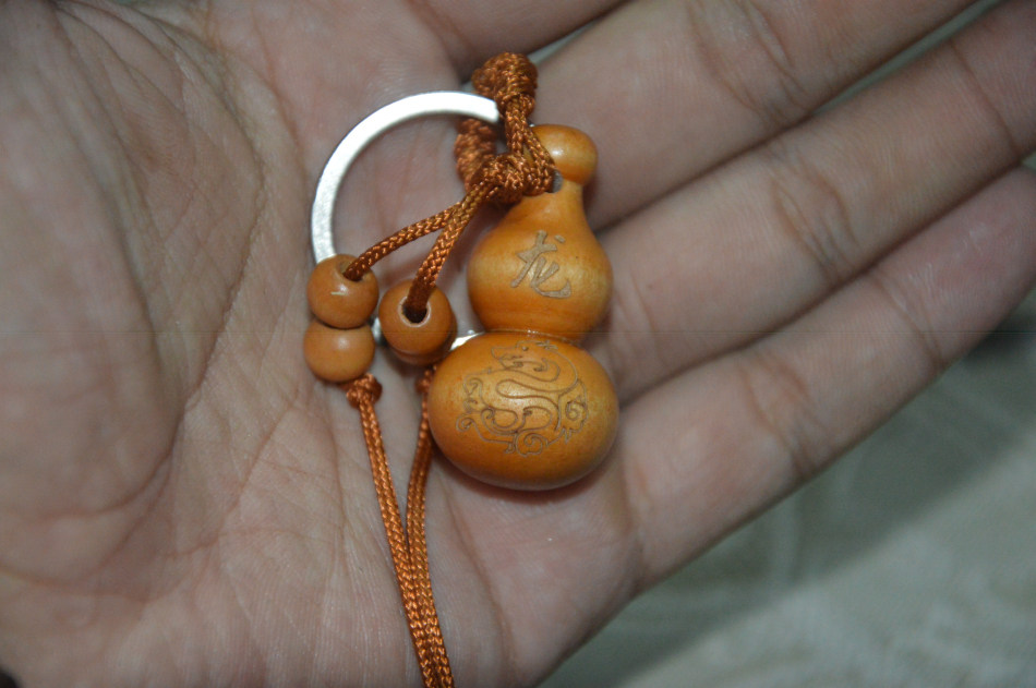 Natural peach wood zodiac gourd keychain pendant random delivery if not specified