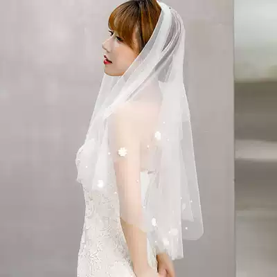 Wedding veil female bride white headdress Super fairy short Mori retro Korean wedding gift Net red photo props