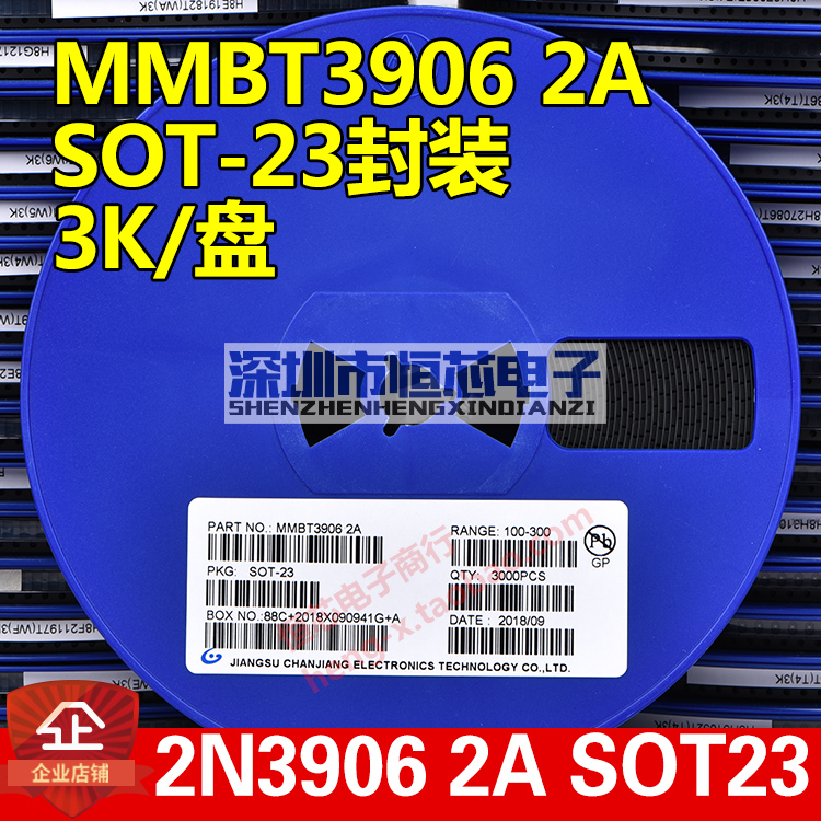 Pattern Triode 2N3906 MMBT3906 Silk print 2A SOT-23 Package PNP 3000 discs