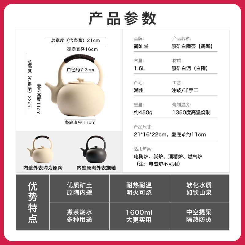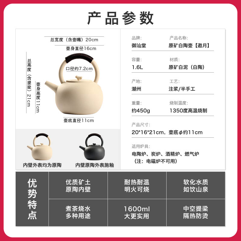 Japanese-style pot pot pot for houseboiled tea-resistant ceramic teapot white ceramic teapot brewed teapot for health pot