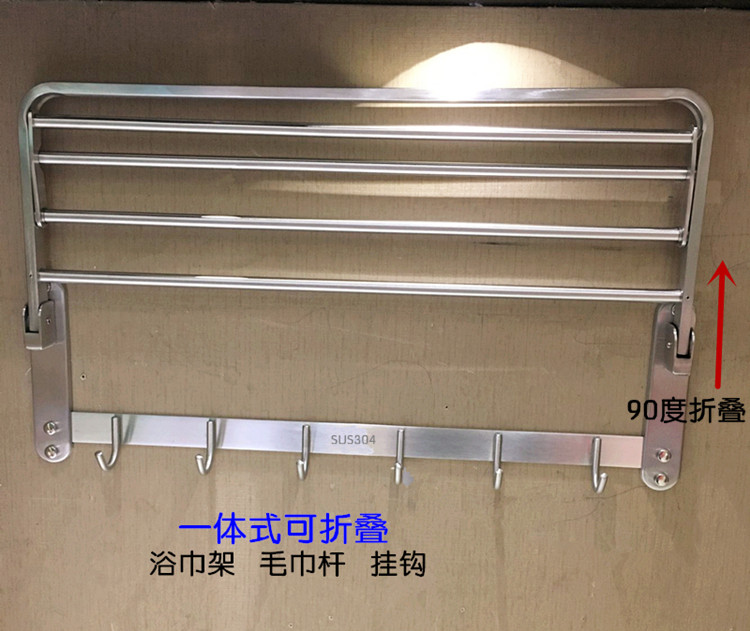 304 Stainless Steel Wire Drawing Bath Towel Rack Makeup Room Hair Towel Rack Hardware Hanging Series Double Layer Can Fold