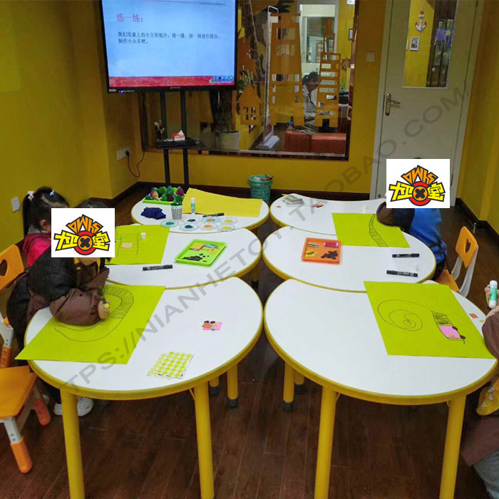 Yucai Students' table and chairs Early teaching training course Kindergarten children lifting and learning parquet-style half-moon table drawing table