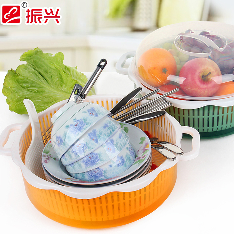 Revitalized Filter Screen Bowls Chopsticks Basket Water Fruit Basket Drain Basket Wash Vegetable Leak Griddle Basket With Lid Double Drain Water Containing Basket