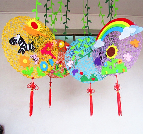 Kindergarten creative hanging classroom wall decoration decoration materials Handmade color paper rope pad DIY background hanging