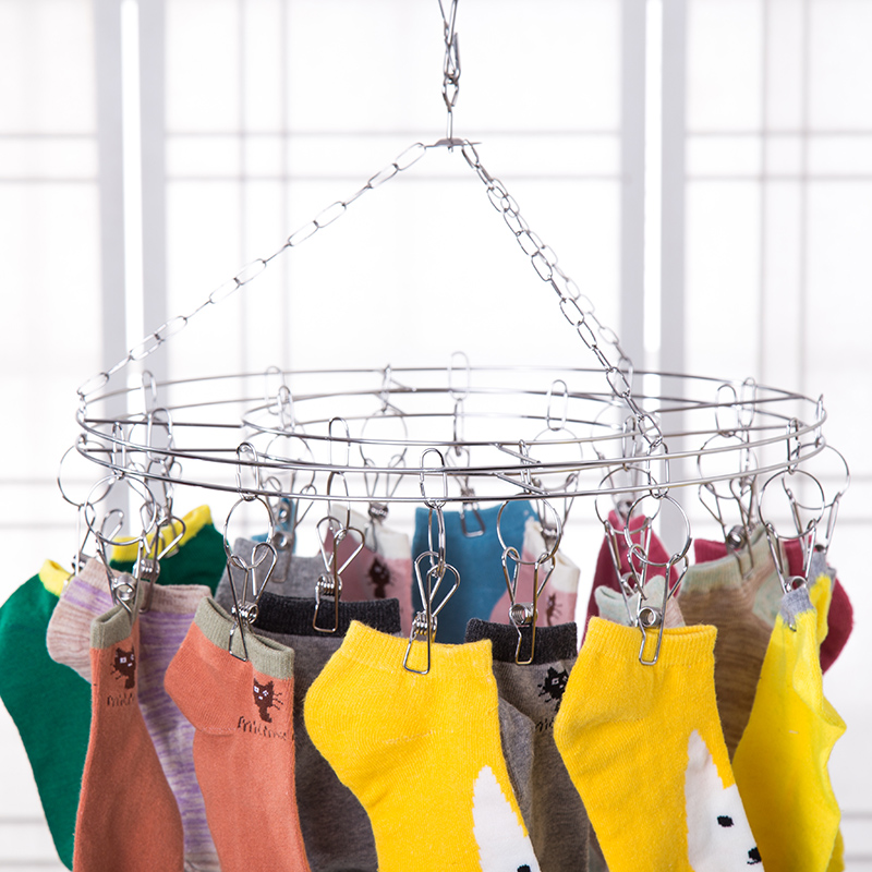 Stainless steel multi-clamp dry socks rack socks Diaper Underwear Briefs Underwear Socks Round Multifunction Windproof Sundry Clothes