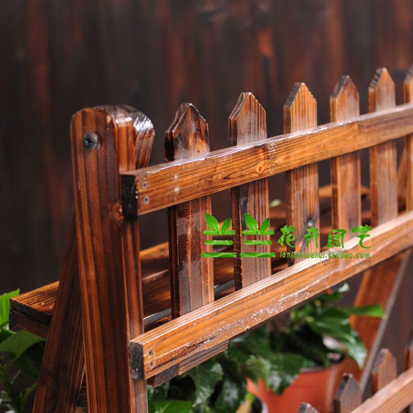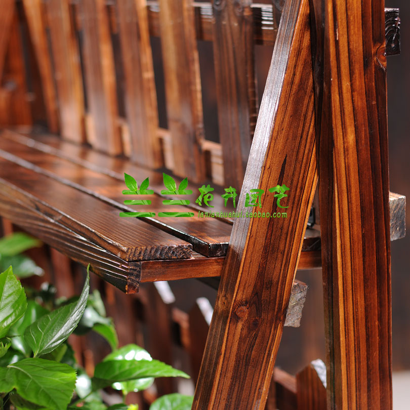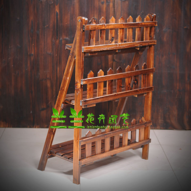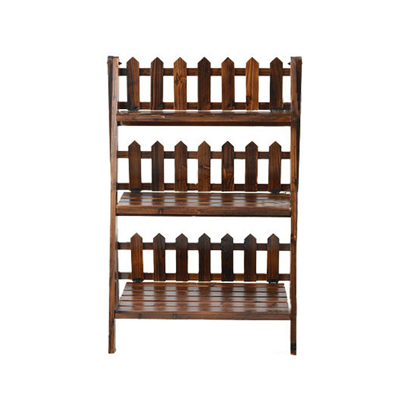 Anti-corrosion wood three-layer folding flower rack shelf shoe rack Solid wood bookshelf Living room carbonized multi-layer fleshy balcony Golden Ge