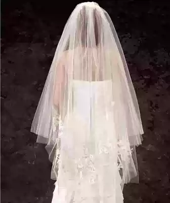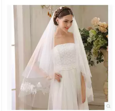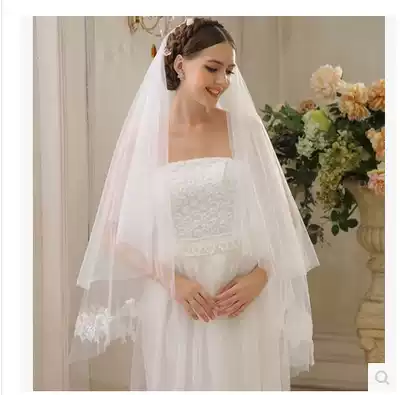 New bride wedding wedding veil lace double layer comb cover imported encrypted soft net veil