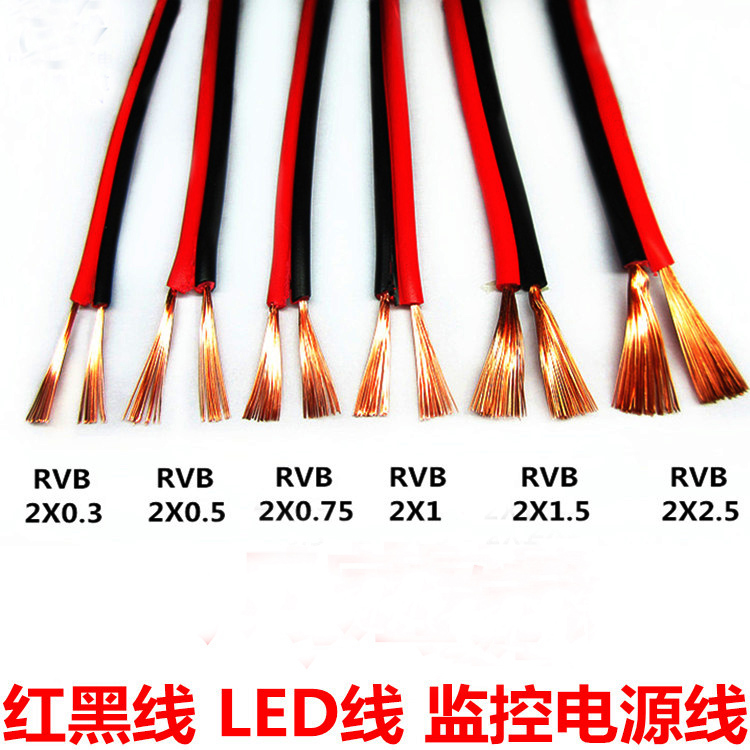 Red and black parallel line RVB2X0 3 0 5 1 0 monitoring power cord LED power cord double parallel 75 meters parallel line