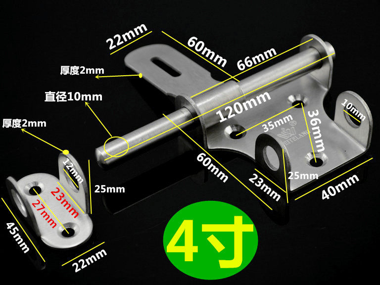 4 inches (201 stainless steel latch) two-way latch 6 inches (201 stainless steel latch) two-way latch 4 inches (304 stainless steel) two-way latch 6 inches (304 stainless steel)