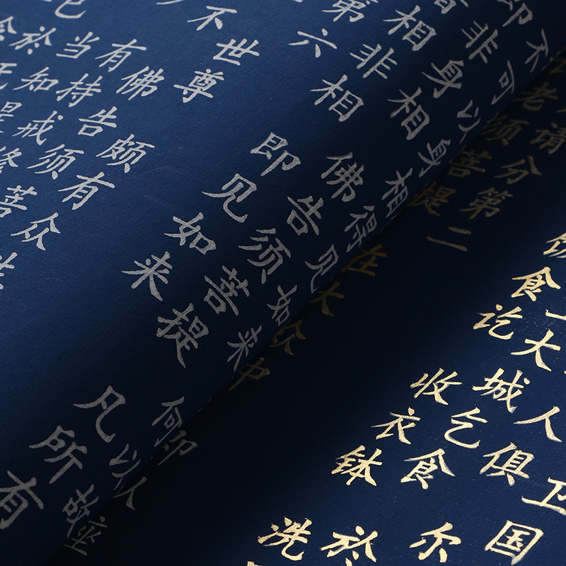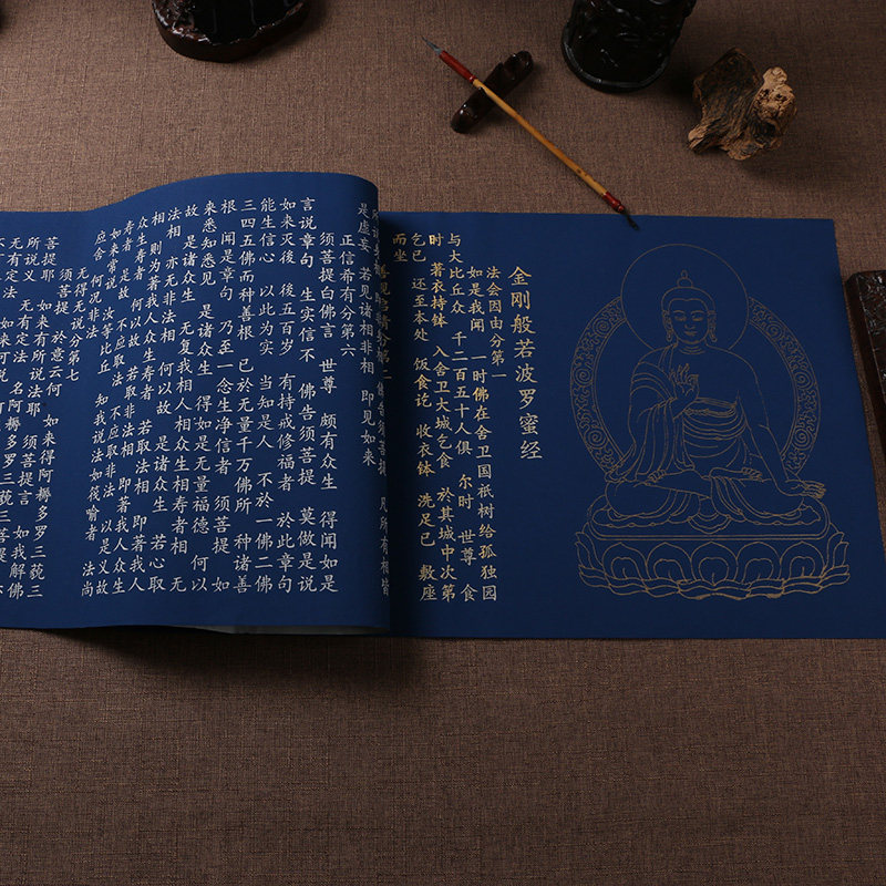 The whole Diamond Sutra small script copybook brush calligraphy red copy Buddhist scriptures gold and silver blue rice paper pen and ink set