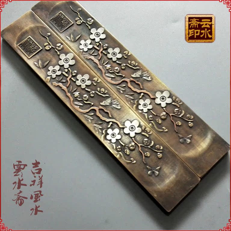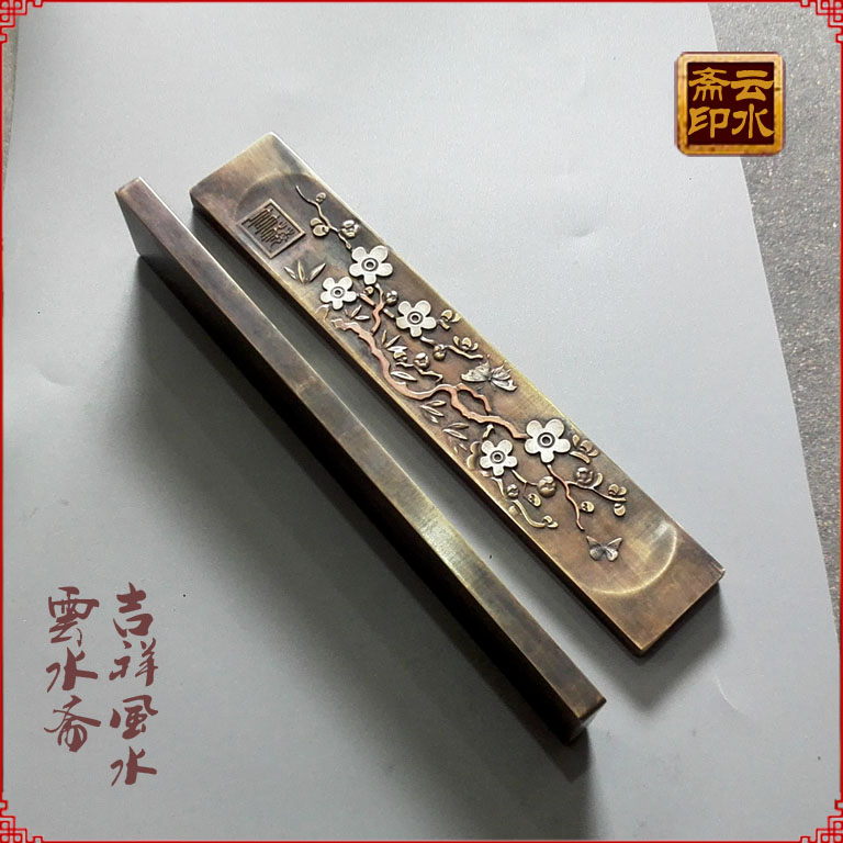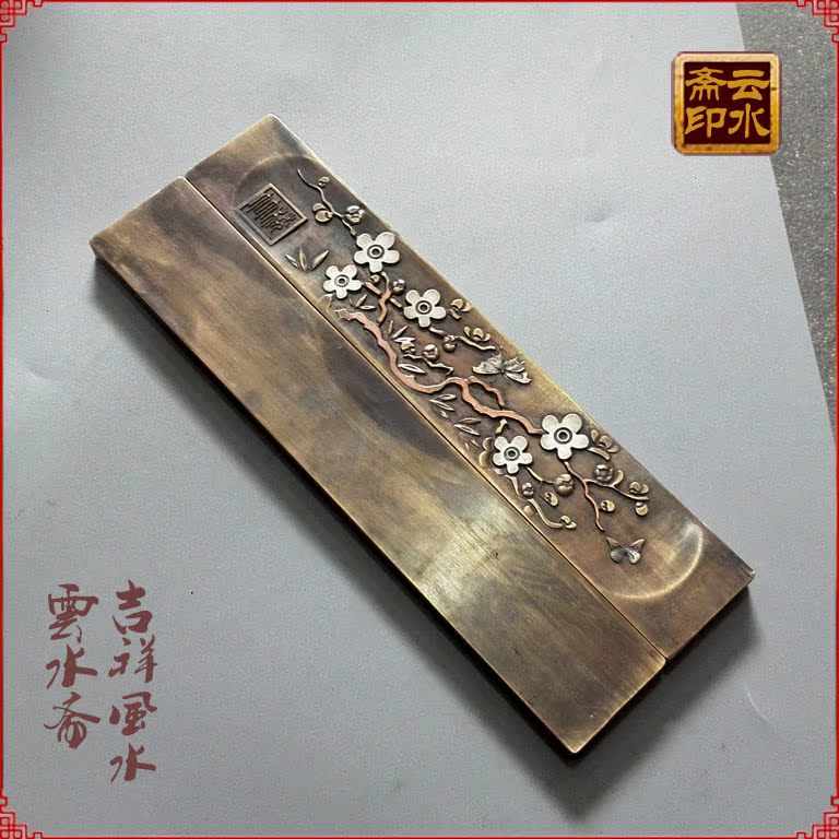 Pure copper paperweight copper town ruler wood pressure ruler book town solid antique study four treasures plum blossom practical