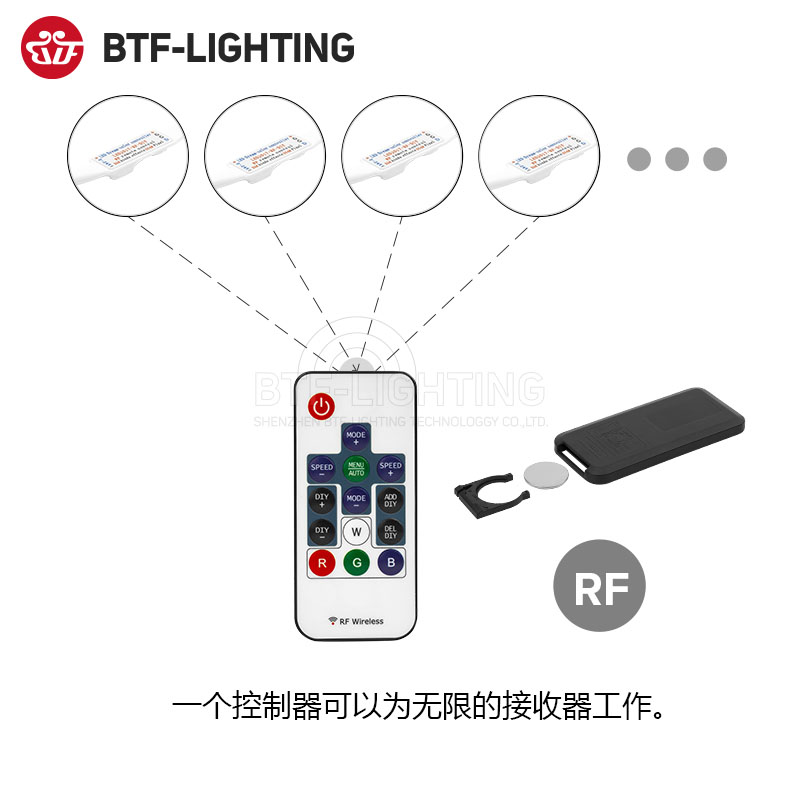 Hot selling LED full-lantern WS2812 2811 1903IC wireless radio frequency multiple effects remote control wide pressure controller