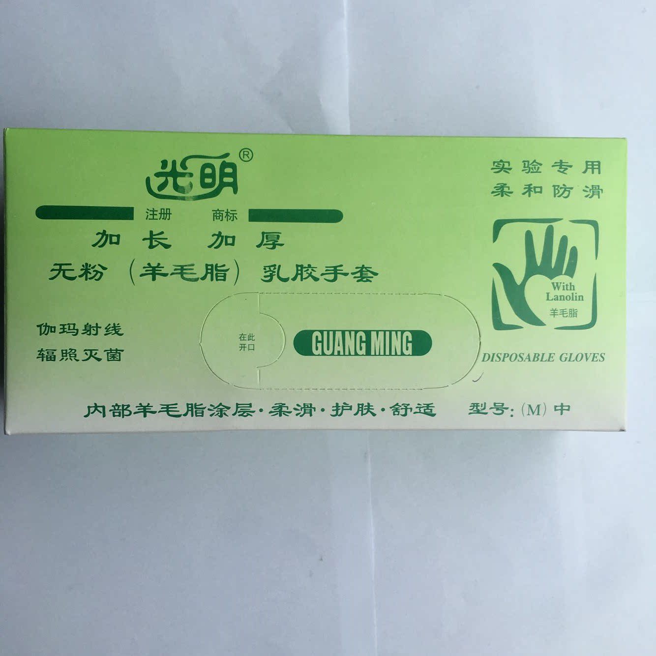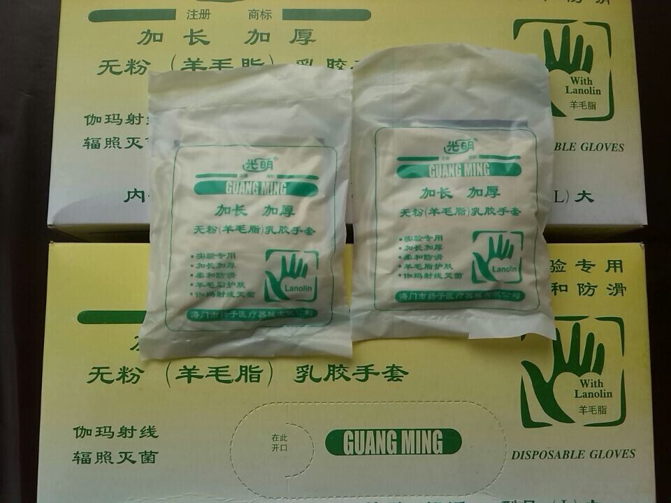 Guangming brand powder-free latex gloves Lanolin extended thickened latex 12 inch gloves sterilization 25 double boxes