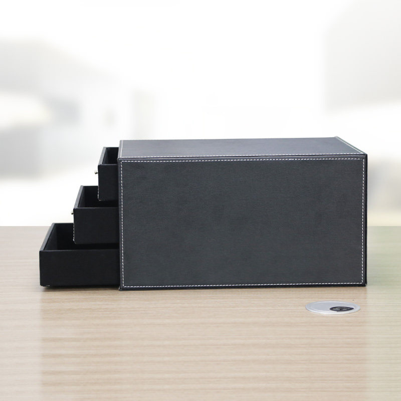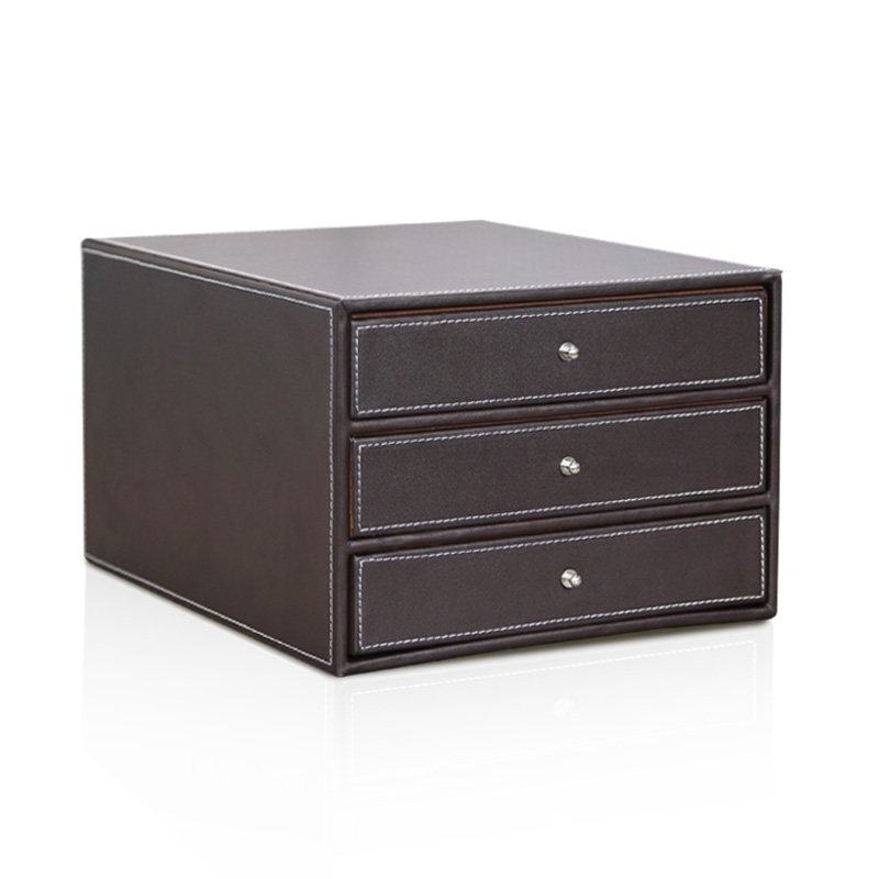 High-end A4 File Containing Information Box Business Office Supplies Leather Desktop Cabinet Triple Drawer Special Price-Taobao