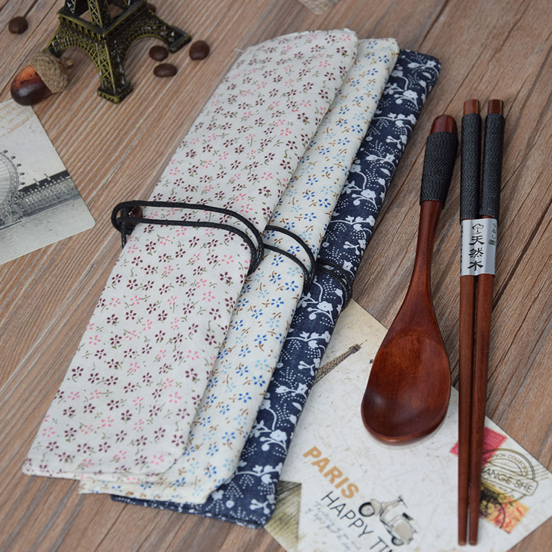 zakka Japanese-style creative simple retro and wind cloth bag chopsticks spoon bag portable cloth tableware set bag