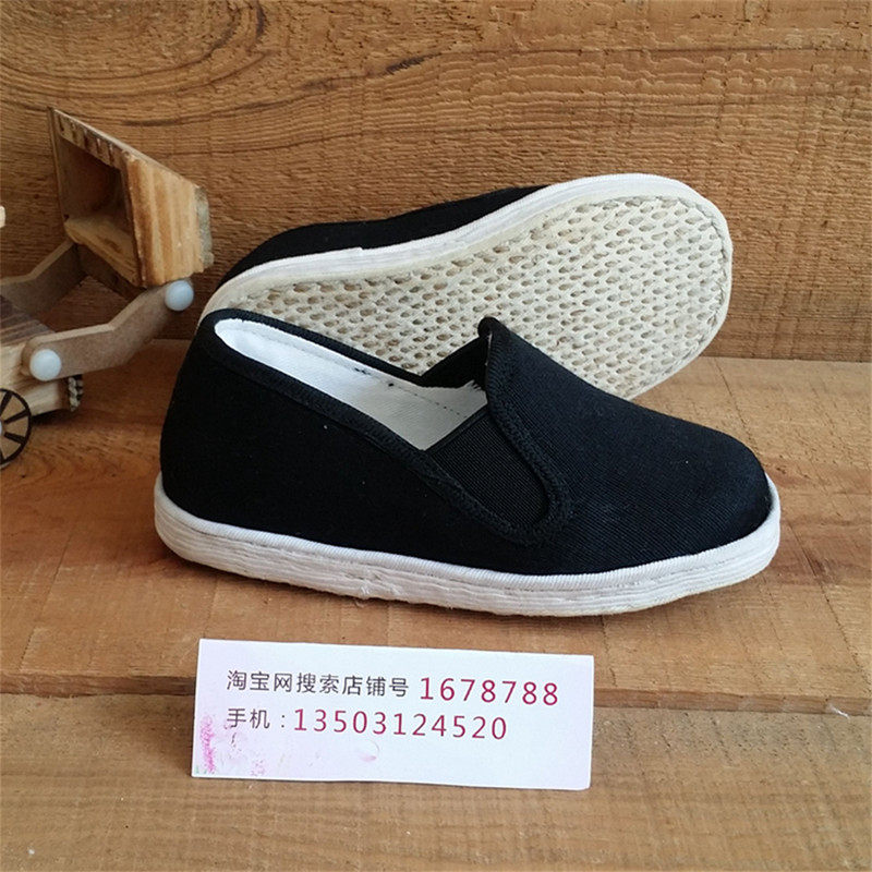 Pure black children's shoes red color strip (elastic mouth)mouth section blue Yangyang repair program section red chicken crown area red embroidered area