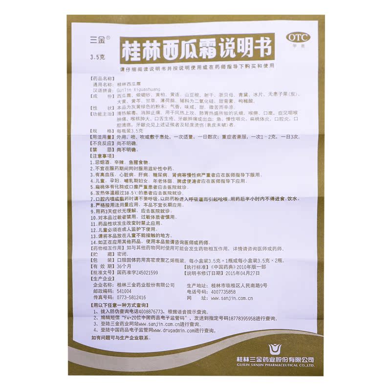 Sanjin Guilin Watermelon Cream Spray 3 5g Clearing heat, detoxifying, reducing swelling, relieving pain, sore throat, sore, mouth ulcer yf