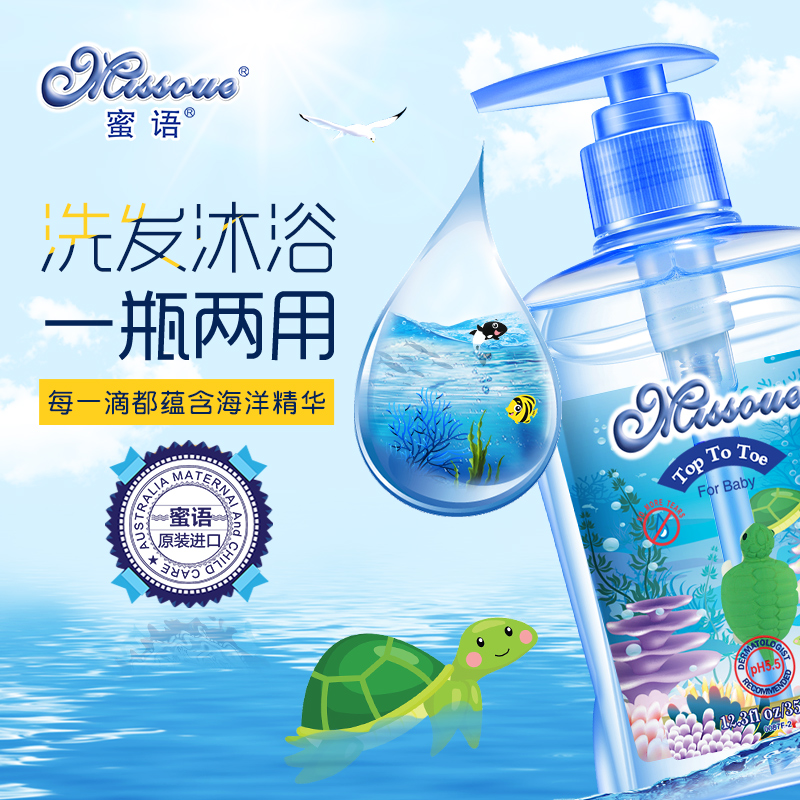 Honey language imported baby shower gel 2-in-1 children's shampoo Shower gel Baby wash care 2-in-1 newborn lotion