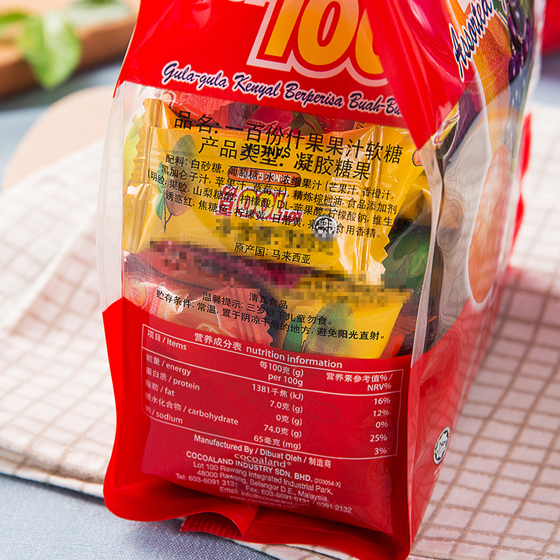 Malaysia 100 fruit juice fudge 320g*2 bags Net Red leisure imported wedding candy candy snack products