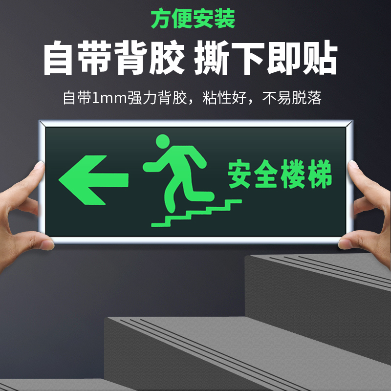 Safety exit sign light Power-free channel self-luminous luminous wall sticker Arrow prompt logo sticker label
