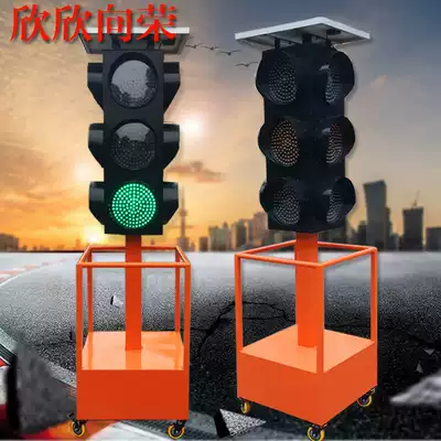 Solar LED mobile signal light Four-sided red, green and yellow lights can lift and lower traffic lights Driving school